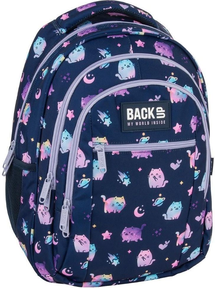 Plecak szkolny BackUP Violet Kittens dla dziewczynki tęczowe kotki O25 Witaj w bajecznym świecie, gdzie słodkie, tęczowe kotki unoszą się niczym gwiazdy na tle intensywnie fioletowego nieba! Delikatne kociaki w pudrowych odcieniach pastelowej tęczy emanują urokiem, radością i niezwykłą lekkością. W tle migoczą spadające gwiazdy, a tajemnicze planety nadają całości kosmicznego, magicznego charakteru. Violet Kittens to wzór stworzony dla marzycieli, miłośników zwierząt i wszystkich, którzy kochają oryginalne, pełne fantazji motywy. Najważniejsze cechy plecaka BackUP Violet Kittens 3 przestronne komory – doskonała organizacja podręczników, zeszytów, śniadaniówki czy stroju sportowego. 2 boczne kieszenie na bidon lub butelkę – łatwy dostęp do napoju podczas całego dnia. Praktyczna kieszeń frontowa na suwak – idealna na drobne skarby, klucze, telefon lub słodycze. Bezpieczne kieszenie na laptopa i tablet – schowane w pierwszej komorze, chronią cenny sprzęt. Funkcjonalny organizer w drugiej komorze – kieszonka z siateczki na zamek, uchwyt na klucze, przegródki na długopisy, legitymację oraz większa kieszeń na akcesoria codziennego użytku. Ergonomiczne, usztywnione plecy – wyprofilowane oddychającą pianką dla komfortu noszenia i zdrowej postawy. Miękkie, profilowane szelki – z możliwością regulacji, zapewniają wygodne dopasowanie. Regulowany pasek mostka – poprawia stabilność plecaka na plecach. Czarne, wzmocnione dno – wykonane z wytrzymałej tkaniny, odpornej na przetarcia i zabrudzenia. Wzmocniona rączka i dodatkowy uchwyt – dla łatwego przenoszenia i zawieszania plecaka. Elementy odblaskowe – zwiększające widoczność dziecka po zmroku. Idealny dla uczniów szkół podstawowych, miłośników kotków i magicznych, pastelowych motywów, osób poszukujących plecaka łączącego funkcjonalność, wygodę i wyjątkowy styl. Wymiary: 42 x 30 x 20 cm Kolekcja: Violet Kittens