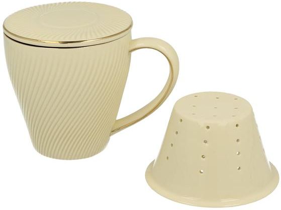 Kubek Z ZAPARZACZEM ze złoceniem ICE CREAM 430ml ⭐ Kubek z zaparzaczem ICE CREAM - 430 ml Zasługujesz na coś absolutnie wyjątkowego, takiego jak ekskluzywny komplet najwyższej jakości porcelany, który sprawi, że parzenie herbaty stanie się prawdziwą ceremonią! ✔️ Piękny i funkcjonalny zestaw, na który składa się: kubek z pokrywką i porcelanowym zaparzaczem. ✔️ Kubek, pokrywka oraz zaparzacz wykonane z najwyższej jakości porcelany w kolorze kremowym ze złotymi zdobieniami. ✔️ Delikatna kolorystyka i precyzja zdobienia sprawiają, że komplet prezentuje się niezwykle elegancko i przykuwa spojrzenie. Taki zestaw uprzyjemni każdą chwilę delektowania się herbatą, kawą czy naparem z ziół. Koniec z uciążliwymi fusami. Jedyną rzeczą, która może odebrać nam przyjemność z picia herbaty są pływające luźno fusy, których wybranie kończy się zwykle szybkim wystudzeniem naparu. Dodatkowo należy pamiętać, że w przypadku niektórych herbat czas parzenia nie powinien przekroczyć 3 minut, dlatego powolne wyławianie liści może spowodować utratę ich cennych właściwości i aksamitnego smaku. Dzięki wyjmowanemu zaparzaczowi przyrządzanie ulubionych napojów stanie się bajecznie proste. To także doskonała propozycja na prezent - dołączone do zestawu dekoracyjne pudełko samo w sobie stanowi ozdobę i nie wymaga dodatkowego pakowania. Paczka ulubionej herbaty liściastej i porcelanowy kubek z zaparzaczem stanowić będzie idealną prezentową parę, którą zachwyci się każdy. Oprócz wyjątkowego wyglądu i niezwykłej praktyczności taki zestaw pokaże bliskiej osobie, że troszczycie się o jej zdrowie, gdyż herbata zaparzona we właściwy sposób posiada wiele cudownych właściwości. ✅ Pojemność kubka: 430 ml ✅ Średnica: 10 cm ✅ Wysokość kubka: 11 cm ✅ Elementy: kubek, zaparzacz, pokrywka, pudełko. ✅ Materiał: porcelana ✴️ Porcelany NIE można myć w zmywarce.
