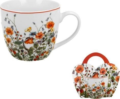 Duży kubek WILD BIRD wchodzący w skład serii DUO CLASSICS. Pojemność całkowita kubka 490 ml (pojemność liczona po rant kubka). Wykonany jest z porcelany New Bone, charakteryzującej się elegancką i naturalną kremowo - białą barwą z delikatnym połyskiem a także wyjątkową wytrzymałością przy zachowaniu lekkości i delikatności. Doskonały do przyrządzania ulubionej kawy i aromatycznej herbaty.Linia zdobiona uroczym fragmentem polnej łąki, gdzie dominują wiosenne kwiaty okalające małego ptaszka. Delikatna i nienachalna kolorystyka zdecydowanie wyróżnia kolekcję. Dzięki sporej pojemności kubka możemy dłużej cieszyć się naszym ulubionym napojem. Całość zapakowana w oryginalne opakowanie z uchwytem z tym samym motywem to doskonały pomysł na niebanalny prezent urodzinowy zarówno dla kobiety i mężczyzny, a także podarunek dla szefa czy nauczyciela, również jako podziękowanie. Wzór: WILD BIRD Produkt 1 x kubek 1 x obwoluta Wymiary Średnica: 10,2 cm Wysokość: 9,5 cm Pojemność całkowita: 490 ml Pojemność użytkowa około 460 ml Materiał porcelana Użytkowanie dopuszczone do kontaktu z żywnością zmywarka mikrofala