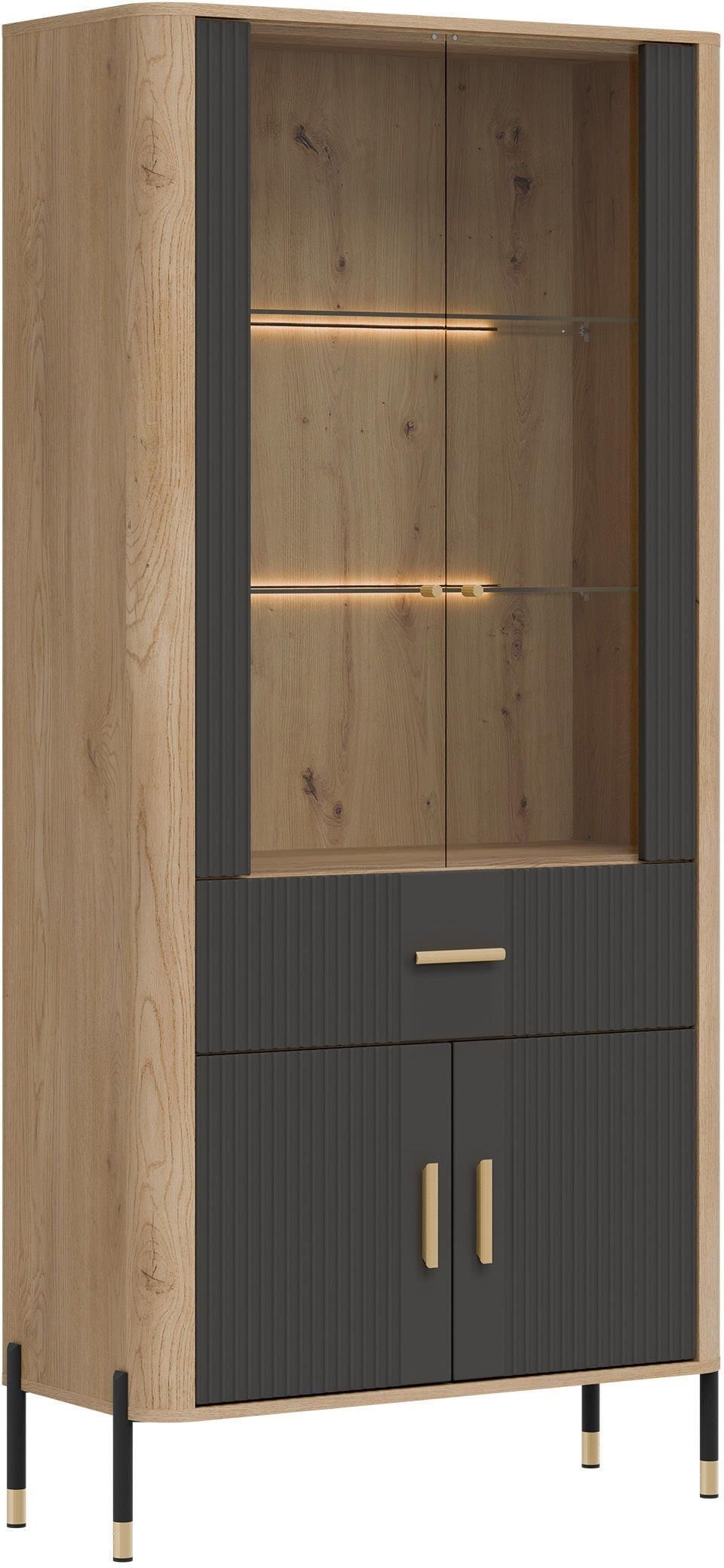 Liveo Witryna Wysoka Dante Dt14 4D1S Dąb Cremona Torro / Antracyt Złoty Uchwyt 187Cm Połczyn-Zdrój