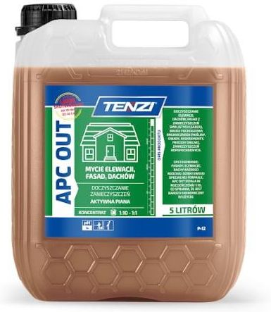 {desc/100/} ⭐TENZI APC Out 5L⭐ {desc/50/} {desc/50/} Dachy, elewacje, fasady, kostka brukowa ✅Niezwykle skuteczny preparat zasadowy do czyszczenia: elewacji, dachów, fasad z zanieczyszczeń smolistych (sadza), brudu pochodzenia organicznego (rośliny, owady, ekstremalia, procesy gnilne, błoto, brud …