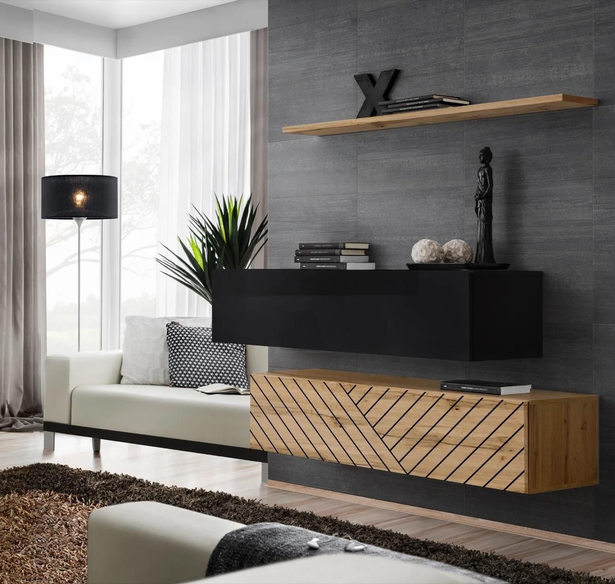 Meblościanka SWITCH LAMEL SB2 dąb wotan/czarna