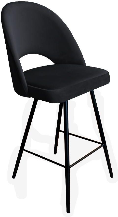 Hoker ISKAR VELVET czarny to elegancki hoker kuchenny tapicerowany miękką tkaniną aksamitną z kubełkowym oparciem na metalowych czarnych nogach.