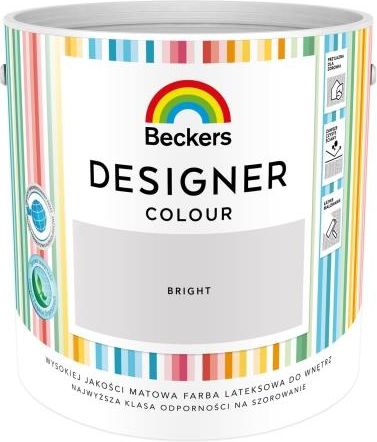 BECKERS DESIGNER COLOUR Pojemność: 2,5l Kolor: BRIGHT BECKERS DESIGNER COLOUR Wysokiej jakości, wodorozcieńczalna farba lateksowa polecana do malowania ścian i sufitów. Powierzchnia pokryta farbą zyskuje piękne matowe wykończenie. Produkt rekomendowany przez Polskie Towarzystwo Alergologiczne. …