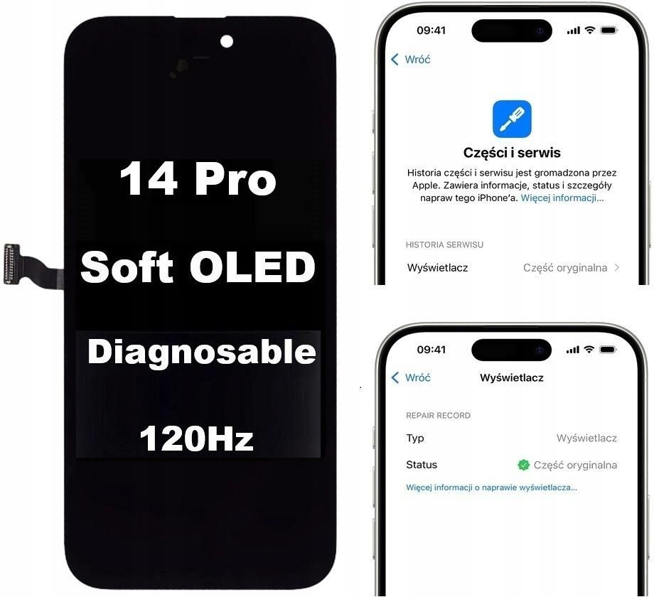 Wyświetlacz Diagnosable do Apple iPhone 14 Pro (Soft OLED, 120Hz) Kompletny moduł ekranu z digitizerem wraz z możliwością przypisania jako oryginał do danego iPhone'a Kompatybilność iPhone 14 Pro (6.1") A2651 / A2893 / A2894 / A2895 / A2896 Rodzaj matrycy: Soft OLED Częstotliwość odświeżania: 120Hz Klasa jakościowa: Najwyższej jakości zamiennik w technologii oryginalnego ekranu Stan: Fabrycznie nowy Wersja: Diagnosable - z możliwością przypisania jako oryginał w ustawieniach Zestaw zawiera Matryca wyświetlacza z panelem dotykowym Siateczka ochronna głośnika rozmów Plastikowe ramki pozycjonujące sensory i kamerę Fabryczne folie ochronne Kartonowe pudełko Opis i cechy produktu Kompletny wyświetlacz z panelem dotykowym (digitizerem) Fabrycznie zamontowane komponenty: ramka montażowa, maskownica głośnika, plastikowe mocowania czujników i kamery Posiada folie ochronne oraz dedykowane twarde pudełko z blistrem lub pianką dla zabezpieczenia całego modułu i taśm flex Wyświetlacze są fabrycznie testowane pod kątem prawidłowego wyświetlania obrazu oraz czułości dotyku Najnowsza seria wyświetlaczy "Diagnosable" z możliwością z możliwością skonfigurowania jako oryginał do danego iPhone'a * Wyświetlacz jest rozpoznawany jako oryginalny w wersji oprogramowania iOS 18.4. Nie ponosimy odpowiedzialności za ewentualne zmiany wprowadzone w kolejnych aktualizacjach oprogramowania przez Apple, które mogą wpłynąć na wyświetlanie funkcji przypisania wyświetlacza Instrukcja Telefon wymaga aktualizacji iOS do 18.4 oraz połączenia z Internetem Przy pierwszym uruchomieniu iPhone po montażu wyświetlacza, w ustawieniach pokaże się informacja o wykryciu nowego wyświetlacza i dokończeniu instalacji Kliknij w informacje lub przejdź do [Ogólne]>>[To urządzanie]>>[Części i historia serwisu] przy wyświetlaczu pojawi się komunikat "Zrestartuj i dokończ naprawę" Kliknij przycisk, telefon zrestartuje się i przejdzie w tryb diagnostyczny Postępuj zgodnie z instrukcją, połącz się z siecią Wifi i przejdź dalej Zaakceptuj zgody, telefon rozpocznie konfiguracje. Po rozpoznaniu wyświetlacza jako oryginalnego, kliknij kontynuuj Po zakończeniu diagnostyki, kliknij restart aby telefon ponownie się uruchomił W ustawieniach wyświetlacz będzie przypisany jako oryginalny "Używany" W przypadku braku możliwości połącznia z trybem diagnostycznym z ustawień, wywołaj go ręcznie: Wyłącz telefon. Naciśnij i przytrzymaj równocześnie przyciski zwiększania i zmniejszania głośności W dalszym ciągu trzymając wciśnięte przyciski, podłącz kabel zasilający do iPhone Poczekaj aż zapali się logo Apple i puść przyciski W trybie diagnostycznym postępuj zgodnie z instrukcjami