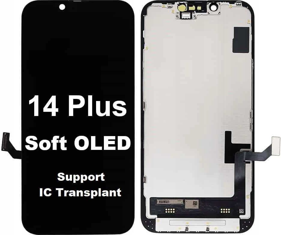 Wyświetlacz LCD ekran dotyk iPhone 14 Plus (Soft OLED) (Removable IC) Kompletny moduł ekranu z panelem dotykowym, ramką i mocowaniami czujników oraz możliwością wymiany układu IC Kompatybilność: Apple iPhone 14 Plus (A2632 / A2885 / A2886 / A2887 / A2888) Technologia: Soft OLED Klasa jakościowa: Najwyższej jakości zamiennik w technologii oryginalnego ekranu Wersja: Removable IC (Support IC Transplant) - łatwo usuwalny układ IC z możliwością wymiany na macierzysty Zestaw zawiera Matryca wyświetlacza z panelem dotykowym Siateczka ochronna głośnika rozmów Plastikowe ramki pozycjonujące sensory i kamerę Fabryczne folie ochronne Kartonowe pudełko Opis i cechy produktu Kompletny wyświetlacz z panelem dotykowym (digitizerem) Fabrycznie zamontowane komponenty: ramka montażowa, maskownica głośnika, plastikowe mocowania czujników i kamery Posiada folie ochronne oraz dedykowane twarde pudełko z blistrem lub pianką dla zabezpieczenia całego modułu i taśm flex Wyświetlacze są fabrycznie testowane pod kątem prawidłowego wyświetlania obrazu oraz czułości dotyku Support IC Transplant - łatwo usuwalny układ IC z możliwością wymiany na macierzysty w celu usunięcia komunikatu o nieznanej części (jest to opcjonalny zabieg i bez tego ekran również funkcjonuje prawidłowo)