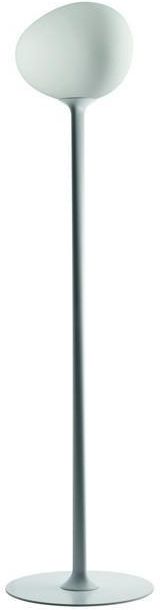 Lampa podłogowa Foscarini 168003EN-10 Gregg media Kształt dużego kamyka wypolerowanego przez wodę był inspiracją do stworzenia designerskiej lampy podłogowej Foscarini Gregg w kolorze białym z czarną podstawą. Lampa została wykonana z ręcznie dmuchanego szkła i sprawdzi się zarówno w kuchni, jak i …