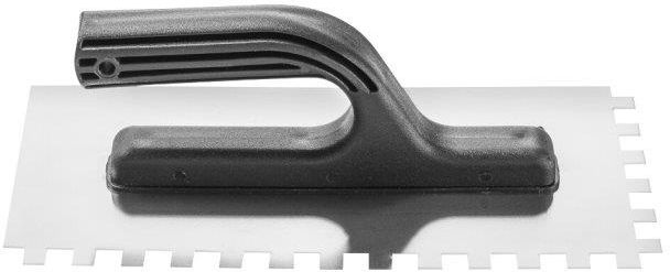 KAEM Rajberka *33* ząb 10x10mm Rajberka seria *33* 27 x 13 cm zębata 10mm Rajberka seria *33*WYMIAR: 27 x 13 cmRODZAJ CZĘSCI ROBOCZEJ: zębata (ząb 10x10 mm)Rajberka seria 33 przeznaczona do nakładania i wygładzania wszelakiego rodzaju mas, klejów itp.Przy dużym zakresie prac.Zaleta/korzyść: Rękojeść z twardego plastiku zapewnia dobrą chwytność oraz idealny komfort podczas pracy, wysokiej jakości stal nierdzewna.Materiał części roboczej: Stal nierdzewnaRodzaj trzonka: plastik 5905061067991 006239