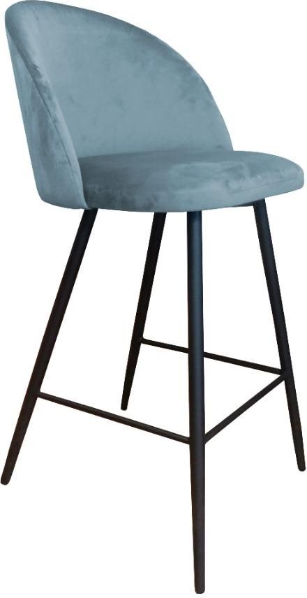 Designerski hoker CLAUDINE BL VELVET tapicerowany szarą tkaniną aksamitną, doskonale sprawdzi się przy kuchennej wyspie w stylu rustykalnym.