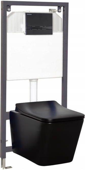 ZESTAW PODTYNKOWY WC TINOS BLM UNIWERSALNY STELAŻ PODTYNKOWY MISKA WC PODWIESZANA CZARNA MAT BEZKOŁNIERZOWA DESKA SEDESOWA WOLNOOPADAJĄCA CZARNA DUROPLAST PRZYCISK SPŁUKUJĄCY CZARNY Zestaw podtynkowy Urządzając łazienkę pragniemy aby spełniała ona nasze wszystkie oczekiwania; była funkcjonalna, przestronna, nowoczesna... a może w ponadczasowym stylu retro...z pewnością łatwa w utrzymaniu czystości oraz by pozwala cieszyć się chwilą relaksu. Mając na uwadze te wszystkie oczekiwania bardzo dobrym rozwiązaniem są stelaże podtynkowe które pozwalają na wygodne i estetyczne powieszenie na ścianie ceramiki sanitarnej: zarówno miski wc, bidetu jak i umywalki. Najpopularniejsze są stelaże do zabudowy lekkiej, które bardzo dobrze sprawdzą się przy ścianach murowanych jak i ściankach działowych. Stelaże Kerra są praktyczne, funkcjonalne i niezawodne, a dzięki możliwości regulacji wysokości i sposobu montażu; tradycyjnego lub narożnego oraz wybory koloru i wzoru przycisku w łatwy sposób dopasujesz zestaw podtynkowy do swoich potrzeb. Wysoka odporność użytych materiałów zapewnia długie i komfortowe użytkowanie a sposób wykonania łatwe utrzymanie w czystości. Zestawy Kerra cechuje ponadto minimalizm, elegancja i prosty wygląd pozwalający idealnie wpasować się w aranżację każdej łazienki. NOVOTERM- jeden z czołowych producentów i dystrybutorów domowych urządzeń sanitarnych oraz grzewczych na rynku polskim. Właściciel marek: Loge, Kerra, Focus będących synonimem wysokiej jakości i przodującego wzornictwa. Oferta producenta jest efektem wieloletnich doświadczeń, ciągłego doskonalenia wyrobów i dostosowywania ich do potrzeb klientów. PARAMETRY TECHNICZNE PRODUKTU Produkt: zestaw podtynkowy Model: Tinos BLM W zestawie 1. Uniwersalny stelaż podtynkowy z elementami montażowymi 2. Miska wc czarna 3. Deska sedesowa czarna 4. Przycisk spłukujący Pacific BL 1. Uniwersalny stelaż podtynkowy Rodzaj: Stelaż podtynkowy K50-SLIM zabudowy lekkiej Montaż: uniwersalny – do czoła ściany lub narożny Rama: stalowa malowana proszkowo – wysoka trwałość powierzchni, zwiększona odporność antykorozyjna. Wymiary stelaża Szerokość ramy: 53 cm. Regulacja wysokości: 115-139 cm. Regulacja głębokości: 12-17,5 cm. Mała głębokość montażowa pozwala na zaoszczędzenie miejsca. Mechanizm spłukujący: 6,5/3 l. Regulacja strumienia spłukującego: 6,5~8l / 1~3 l. Nośność: metalowy stelaż o nośności 400 [kg] Zbiornik spłukujący: bezszwowy izolowany pianką poliuretanową. Zawór napełniający: cichy, w 1 klasie akustycznej (EN 14124). Rozstaw otworów montażowych: 18cm i 23cm. Stelaż przystosowany do montażu misek o rozstawach montażowych 180 i 230 cm. Instalacja: stelaż zmontowany fabrycznie – łatwiejsza i szybsza instalacja. Gwarancja: 10 lat 2. Miska wc Model: Tinos BLM Montaż: wiszący Materiał: ceramika sanitarna Kolor: czarna półmat Typ: bezkołnierzowa; miska posiada bezkołnierzowy system spłukiwania KERRA PRO CLEAN zapewniający łatwe utrzymanie czystości . Odpływ: 100 [mm] poziomy Rozstaw otworów montażowych: 180 [mm] Wymiary szerokość: 36 [cm] głębokość: 51,5 [cm] wysokość: 34 [cm] Miska z ukrytym system mocowania Konserwacja: standardowe środki czyszczące/ wg zaleceń producenta 3. Deska sedesowa Typ: deska sedesowa Tinos czarna Kolor: czarny mat Materiał: duroplast Właściwości: deska posiada system spowalniający opadanie „soft close” i system szybkiego wypinania dla łatwego czyszczenia. Zawiasy są wykonane z metalu. Rozety z matowej stali nierdzewnej. 4. Przycisk spłukujący Pacific Black K50Slim Rodzaj: dwudzielny Model: Pacific Materiał: ABS Kolor: czarny Wymiary: 166x227x14 mm [wys x szer x głęb] Przeznaczenie: przycisk dedykowany do stelaża podtynkowego Kerra: "K-50 Slim" W PRZYPADKU CHWILOWEGO BRAKU WYBRANEGO KOLORU PRZYCISKU ZASTRZEGAMY PRAWO DO WYMIANY NA INNY DOSTĘPNY KOLOR- PO WCZEŚNIEJSZEJ AKCEPTACJI KLIENTA