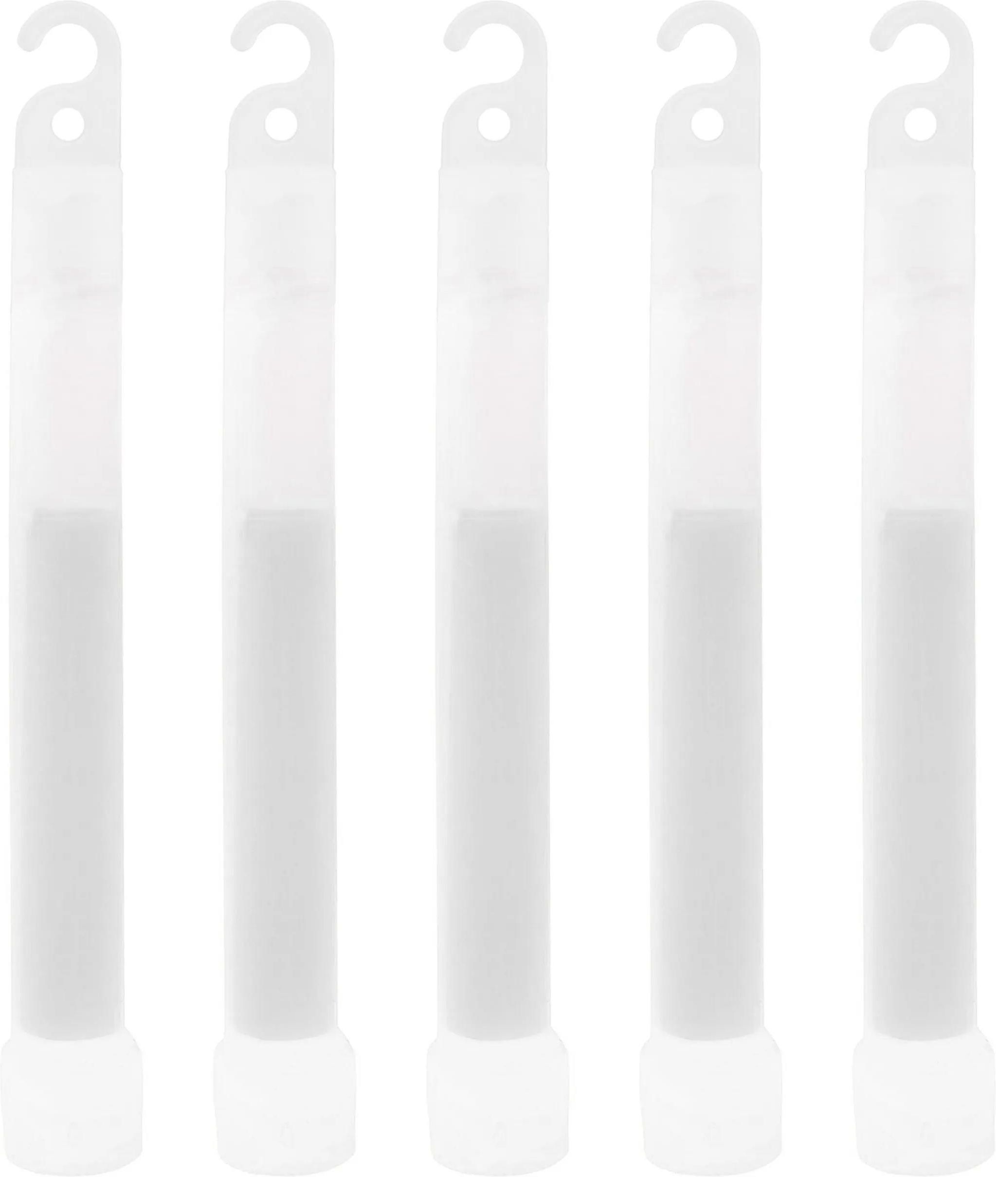 Komplet 5 sztuk oświetlenia chemicznego w kolorze białym. Lightstick to źródło światła niewymagające żadnego zasilania, które może świecić przez 8-12 godzin, zapewniając bezpieczeństwo lub oświetlając teren.