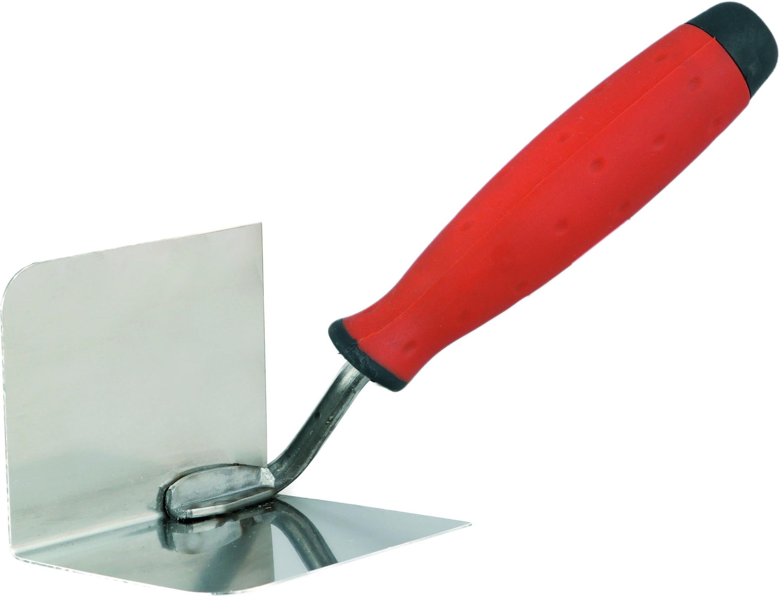 Profesjonalna kielnia kątowa ze stali nierdzewnej z antypoślizgowym uchwytem do prac wykończeniowych przy narożnikach wewnętrznych. Wymiary: 65 x 80 mm