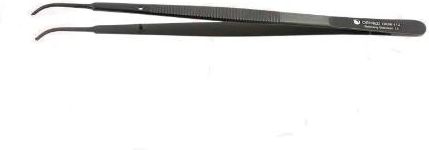 Pęseta chirurgiczna Gerald wygięta 17,5 cm Pęseta chirurgiczna typu Gerald to niezwykle precyzyjna pęseta wygięta na końcu stosowana w zabiegach chirurgicznych najwyższej precyzji. Została pokryta powłoką ceramiczną, która całkowicie eliminuje refleks świetlny, co znacznie podnosi komfort pracy. Powłoka ta dodatkowo zabezpiecza stal chirurgiczną. Produkt przeznaczony jest do użytku w trakcie zabiegów chirurgicznych do przytrzymywania tkanek, szczególnie w trakcie ich zszywania. Pinceta chirurgiczna zapewnia pewny i wygodny chwyt. Produkt najwyższej jakości polecany i ceniony przez wielu użytkowników. Cena dotyczy 1 sztuki.