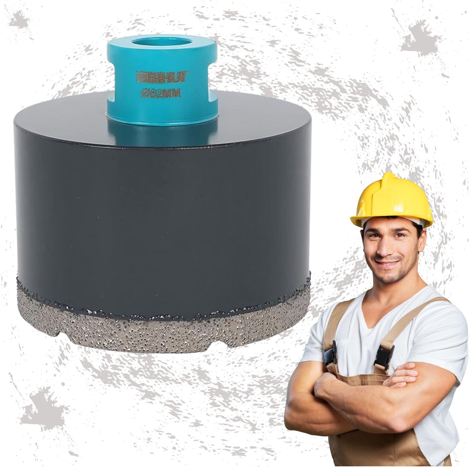 Otwornica diamentowa Bihui 82mm na szlifierkę kątową M14 DBDF82 Otwornica diamentowa do wykonywania szybkich i precyzyjnych otworów w płytkach ceramicznych, gresowych oraz kamieniu naturalnym CECHY PRODUKTU Otwornica BIHUI 82xM14, to narzędzie diamentowe przeznaczone do wykonywania szybkich i precyzyjnych otworów w płytkach ceramicznych, gresowych oraz kamieniu naturalnym. Do stosowania głównie na sucho, z możliwością pracy na mokro. Diamenty, osadzone za pomocą zaawansowanej technologii lutowania próżniowego, gwarantują trwałość i efektywność narzędzia. Korpus cechuje się wykonaniem z wytrzymałej i sztywnej stali. Końcówka z gwintem M14 przeznaczona jest do pracy ze szlifierką kątową. Trwałość wiertła do płytek zależna jest od sposobu jego użytkowania, rodzaju materiału, jego grubości oraz chłodzenia. Dla zachowania precyzji i wydłużenia żywotności, należy przestrzegać zalecanej prędkości i stosować okrężne ruchy podczas wiercenia dla lepszego chłodzenia. PARAMETRY Średnica - 82 mm Mocowanie - M14 Zalecana prędkość - 7,5 – 9 tyś obr/min Maksymalna prędkość obrotowa - 12 tyś obr/min Marka - BIHUI
