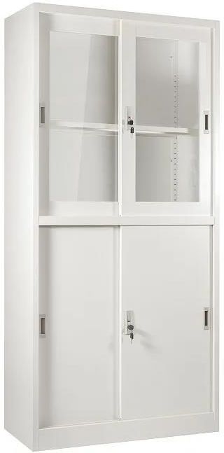Szafka XD-015 wykonana z metalu o grubości 0,5 mm (przed lakierowaniem), lakierowana proszkowo. Górne drzwi mają szklane fronty i działają jako drzwi przesuwne. Wewnątrz znajduje się regulowana półka o nośności do 60 kg. Drzwi zamykane są zamkiem; w komplecie znajdują się 2 klucze. Kluczowe cechy Korpus metalowy 0,5 mm, lakier proszkowy. Górne drzwi ze szklanymi frontami, przesuwne. Regulowana półka. Nośność półki: 60 kg. Zamek w drzwiach, 2 klucze w zestawie. Stabilna, mocna konstrukcja. Gwarancja: 2 lata. Instrukcje / Uwagi Dostępne kolory: czarny RAL 9005, szary RAL 9006, biały RAL 9010. Spełnia normę: PN-EN 16121:2024-05.