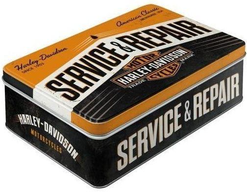 Oferujemy puszkę płaską Puszka płaska "Harley Davidson Service", która doskonale łączy funkcjonalność z designem inspirowanym motoryzacją. Wymiary puszki wynoszą 23x16x7cm, a jej pojemność sięga 2,5 litra. Dzięki zabezpieczonej pokrywce na małych zawiasach, przechowywane w niej produkty pozostaną świeże, a sama puszka jest dopuszczona do przechowywania żywności. Wykonana z wytrzymałej blachy, została pomalowana wysokiej jakości farbą odporną na ścieranie i dodatkowo pokryta lakierem ochronnym, co zapewnia długotrwałe użytkowanie. Na produktu znajduje się tłoczone emblematy i nadruki, które odzwierciedlają tematykę znanej marki. Nasza kolekcja oferuje różnorodne motywy, a każdy z nich ma swoją unikalną historię i znaczenie. Warto zgromadzić całą kolekcję lub obdarować bliskich, ponieważ nasze produkty są idealnym prezentem na każdą okazję. Gwarantujemy wysoką jakość naszych produktów, ponieważ Nostalgic-Art jest światowym producentem licencjonowanych dekoracji i gadżetów, spełniającym rygorystyczne wymogi branżowe, w tym standardy takich marek, jak BMW, Mercedes, John Deere, Coca-Cola i Kawasaki.