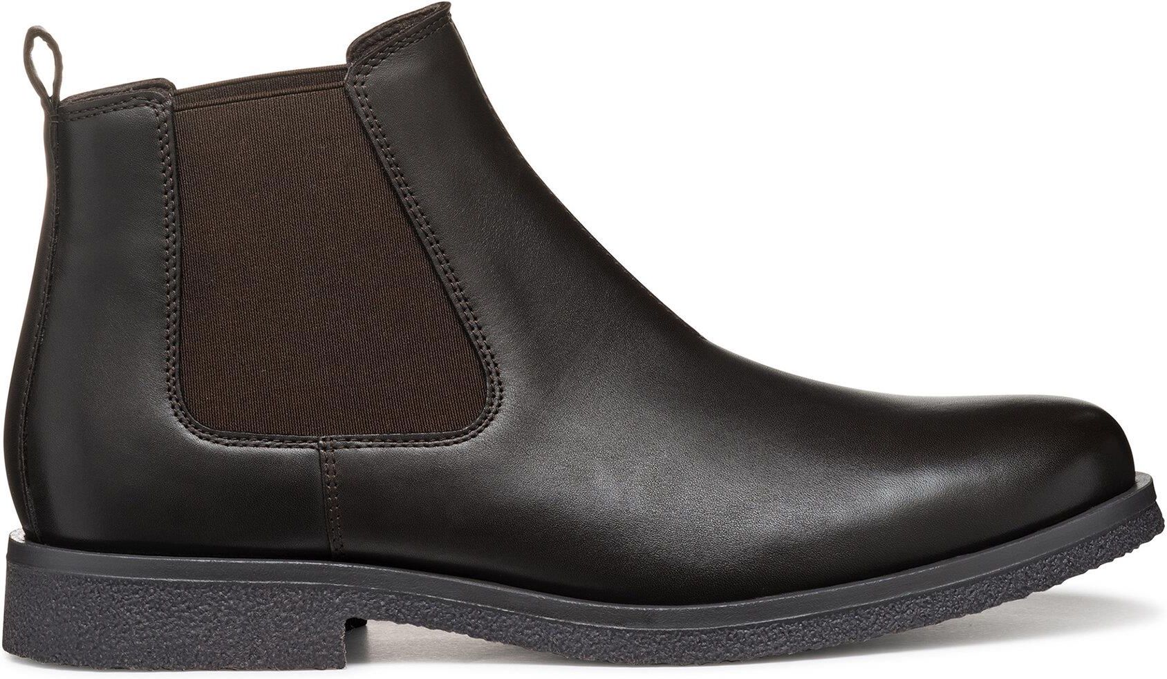 Męskie sztyblety marki Geox to połączenie ponadczasowego stylu i innowacyjnych technologii, które zadowolą nawet najbardziej wymagających. Wykonane z wysokiej jakości naturalnej skóry licowej, zapewniają trwałość i elegancki wygląd, idealny na różne okazje. Gumowy klin w cholewce ułatwia zakładanie i zwiększa komfort noszenia. Dzięki technologii Geox Respira buty gwarantują doskonałą wentylację, pozwalając stopom oddychać przez cały dzień. Wkładka z imitacji skóry zapewnia dodatkową wygodę. Wybierz niezawodne sztyblety Geox, które łączą styl z funkcjonalnością!