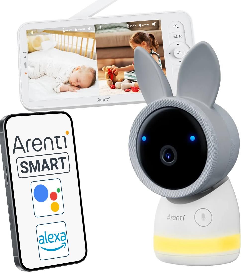 Arenti AInanny to inteligentna niania 2K UHD z auto-trackingiem, wykrywaniem płaczu, czujnikiem temperatury i 14 kołysankami. Połącz się lokalnie z ekranem bezprzewodowym lub z aplikacją Arenti przez Wi-Fi 2.4 GHz i miej stały podgląd na pokój dziecka.