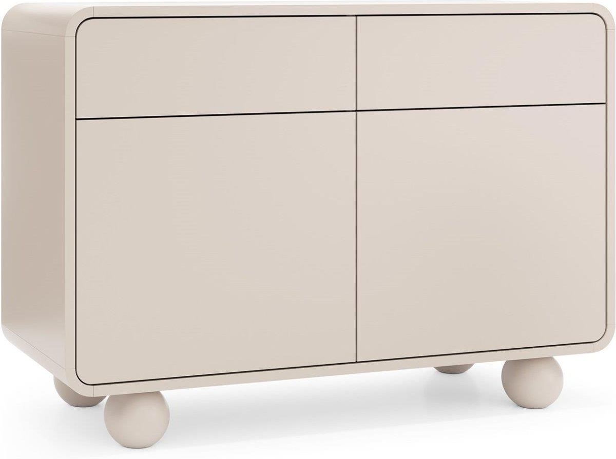 Komoda Albion KSZ108 marki Piaski to elegancki i funkcjonalny mebel w modnym kolorze kaszmiru, który idealnie wpisuje się w nowoczesne aranżacje wnętrz. System Push-to-open ułatwia otwieranie bez tradycyjnych uchwytów, a zawiasy renomowanej firmy Haefele zapewniają płynną pracę drzwiczek.Szuflady osadzono na prowadnicach kulkowych z pełnym wysuwem, co ułatwia dostęp do przechowywanych przedmiotów.Nogi w kształcie kuli nadają meblowi oryginalny charakter i stabilność. Wewnątrz komody znajdują się dwie pojemne szuflady oraz przestrzeń z półkami, idealna do przechowywania dokumentów, tekstyliów czy drobnych akcesoriów. To doskonały wybór zarówno do salonu, jadalni, jak i sypialni.Korpus wykonany jest z płyty laminowanej o grubości 16 mm, zabezpieczonej obrzeżem ABS 0,5 mm. Zaokrąglona listwa MDF o grubości 18 mm dodaje całości lekkości i subtelności.Fronty z płyty laminowanej (16 mm) wykończone są również obrzeżem ABS, co zwiększa trwałość i odporność na uszkodzenia.Pochodząca z polskiej produkcji, komoda Albion reprezentuje nowoczesny styl, który doskonale wpisuje się w różnorodne aranżacje wnętrz. Wymiary: wysokość nóżek - 10 cmZapraszamy do zakładek Produkty z rodziny oraz Produkty podobne.Model objęty jest 2-letnią gwarancją producenta.Produkt dostarczymy do Państwa BEZPŁATNIE pod wskazany adres na terenie całego kraju.Mebel wymaga krótkiego montażu, zgodnie z załączoną instrukcją.Co WAŻNE: zgodnie z prawem i naszymregulaminemmają Państwo pełne prawo do zwrotu nieużywanych towarów, jeśli nie spełnią one Państwa oczekiwań.