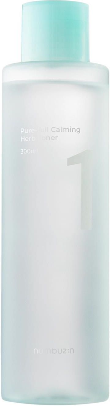 Numbuzin - No 1 Pure-Full Calming Herb Toner - Kojący tonik do skóry trądzikowej z pstrolistką i wąkrotą azjatycką - 300 ml No 1 Pure-Full Calming Herb Toner marki Numbuzin. Tonik do twarzy. Polecany jest w szczególności do pielęgnacji skóry tłustej, mieszanej, trądzikowej oraz skłonnej do podrażnień i niedoskonałości. Swoją dobroczynną formułę opiera na bazie specjalnie wyselekcjonowanych składników aktywnych takich jak: ekstrakty z wąkroty azjatyckiej, pstrolistki sercowatej, lukrecji oraz hiacynta. Tonik Numbuzin natychmiastowo odświeża oraz tonizuje skórę. Dodatkowo łagodzi podrażnienia i zaczerwienienia, reguluje wydzielanie sebum, redukuje niedoskonałości, a także przyspiesza gojenie się wyprysków. Ponadto pomaga utrzymać odpowiedni poziom nawilżenia naskórka, a także działa przeciwzapalnie i przeciwbakteryjnie. Kosmetyk dostępny jest w opakowaniu o pojemności 300 ml, które starczy na dłuższy czas użytkowania. Numbuzin tonik. Długotrwale nawilża. Reguluje wydzielanie sebum. Przyspiesza gojenie się wyprysków. Atrybuty Sposób użycia - Po oczyszczeniu skóry nasącz płatek kosmetyczny obfitą ilością produktu i delikatnie przetrzyj twarz, zaczynając od środka na zewnątrz. Możesz też wylać produkt bezpośrednio na dłonie i wklepać go w skórę. Ostrzeżenia - Przerwij stosowanie produktu w przypadku wystąpienia zaczerwienienia, obrzęku, podrażnienia lub wysypki po ekspozycji skóry na bezpośrednie działanie promieni słonecznych; jeśli objawy utrzymują się, skonsultuj się z lekarzem.Nie stosować na rany ani inne zmienione chorobowo obszary skóry.Warunki przechowywania i użytkowania: a) Przechowywać w miejscu niedostępnym dla dzieci. b) Chronić przed bezpośrednim działaniem promieni słonecznych. Pojemność (ml) - 300 PAO termin trwałości - 12M