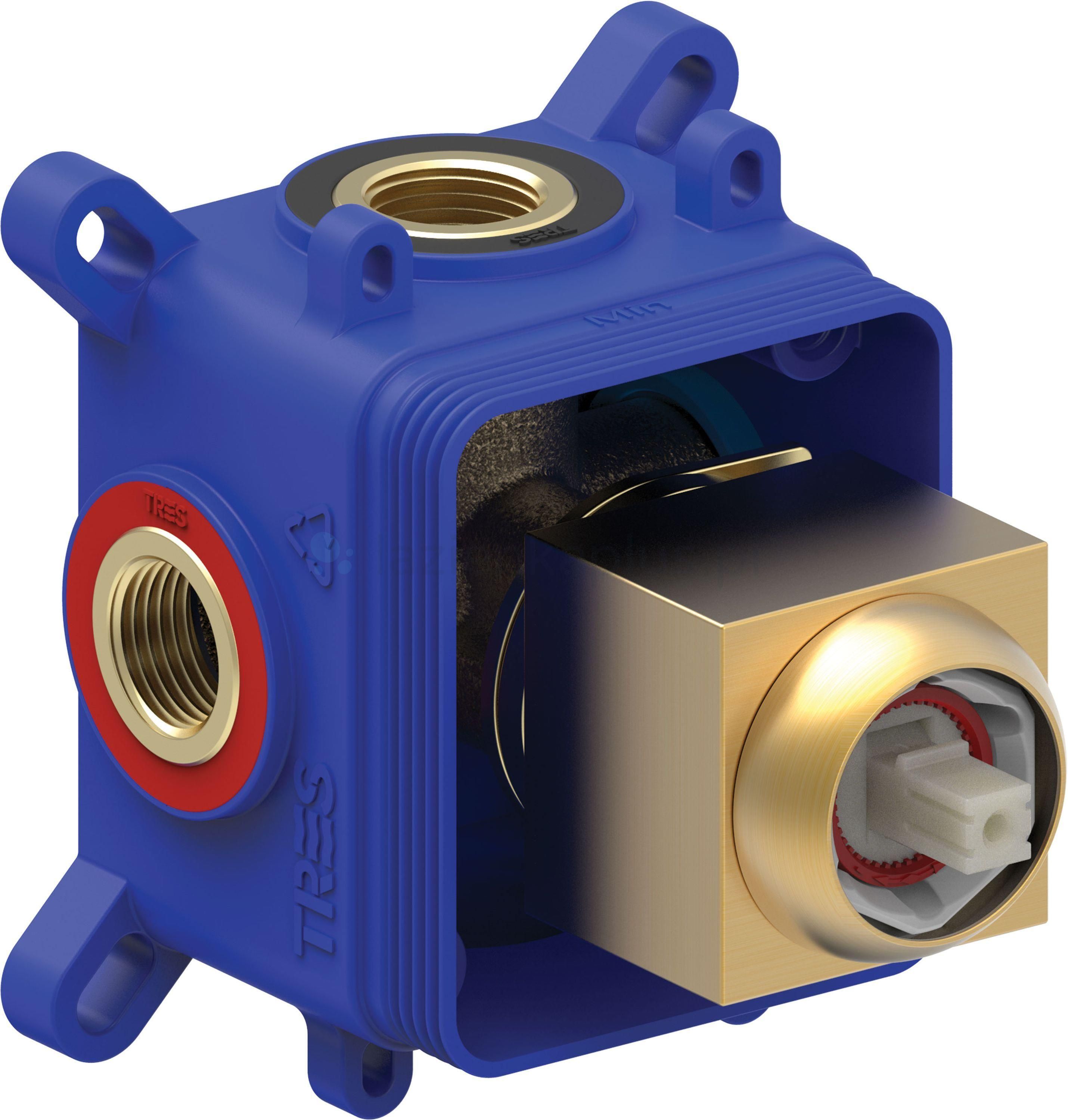 TRES RAPID-BOX wpuszczany korpus Główne cechy: - wpuszczany korpus 1-drożny poprzez RAPID-BOX z baterią jednouchwytową prysznicową - tuleja kwadratowa 24-k złoto matowe - amortyzatory akustyczne - puszka podtynkowa ABS - uszczelka zapobiegająca przedostawaniu się wilgoci