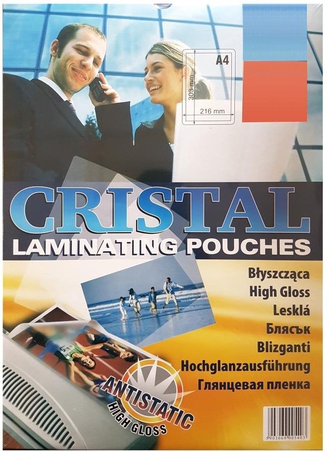 Folia laminacyjna błyszcząca sztywna antystatycznaNajpopularniejsze, sztywne folie błyszczące chronią zalaminowane dokumenty przed uszkodzeniami i pozwalają na przygotowanie atrakcyjnej prezentacji. Folia do laminowania dokumentu to dwa arkusze folii ze zgrzanym brzegiem. Na opakowaniu może pojawić się oznaczenie np. 2×100 mic. Oznacza to, że każdy arkusz folii ma grubość 100 mic.Właściwy dobór rozmiaru folii laminacyjnej do wielkości dokumentu zapewni piękną laminację, zapobiegnie marszczeniu się folii i zniszczeniu laminowanego dokumentu. Opakowanie 100 sztuk.