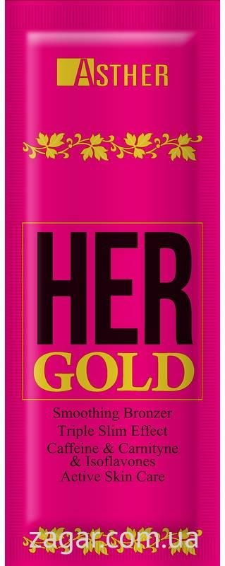 Asther Her Gold Mocny Bronzer Dla Kobiet Intensywnie działający bronzer dla osób o ciemnej karnacji i już opalonych Efekt gładkiej skóry, dzięki zastosowaniu wyciągu z róży francuskiej Formuła wyszczuplająca Slim Complex, która pobudza komórki do spalania tkanki tłuszczowej Skuteczna ochrona przed rumieniem słonecznym Piękny, zmysłowy zapach 15ml
