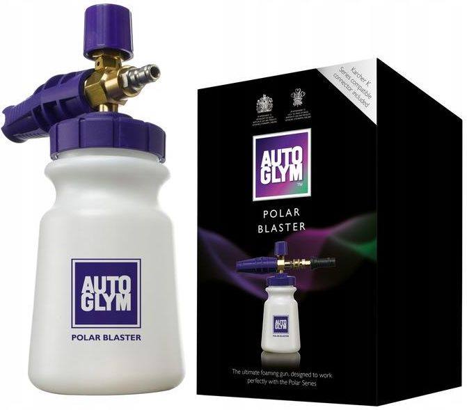 AUTOGLYM POLAR BLASTER KIT Polar Blaster tworzy pasy z grubej, przylegającej piany przy pomocy produktu Polar Blast, optymalizuje gęstość wymaganą do skutecznego głębokiego czyszczenia za pomocą produktu Polar Wash i zapewnia idealną konsystencję do nałożenia hiperhydrofobowego Polar Seal w ciągu kilku sekund. Regulowany rodzaj natrysku pozwala łatwo dopasowywać się do konturów samochodu, zapewniając całkowite pokrycie i odpowiedni czas przebywania piany na zabrudzeniach, zanieczyszczeniach drogowych i innych. Przy pomocy Polar Blaster wykonasz pełną procedurę pielęgnacji zewnętrznej samochodu w sposób szybki, przyjemny i bezpieczny dla powierzchni Twojego samochodu. Autoglym jest wyłącznym dostawcą produktów do pielęgnacji floty samochodowej Rodziny Królewskiej. Dwa herby umieszczone na opakowaniu produktu świadczą o gwarancji jakości, spełnieniu szeregu wyśrubowanych wymogów oraz aprobacie Rodziny Królewskiej. Dołączenie do tego zaszczytnego grona jest procesem niezwykle trudnym, czasochłonnym, rygorystycznym, poddawanym regularnym kontrolom jakości. To właśnie te czynniki są gwarancją najwyższej jakości produktu oraz staranności podczas jego tworzenia. Z pasją do perfekcji... Premium Auto Care sp. z o.o. jest wyłącznym importerem i dystrybutorem produktów marki Autoglym w Polsce. Pianownica NIE JEST kompatybilna z urządzeniem Karcher K7!