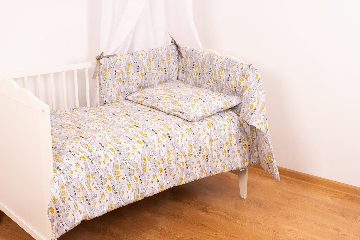 BABYMATEX POŚCIEL 3 EL. 100X135 Z OCHRANIACZEM TRENDY W POJAZDY BUDOWLANE Pościel dziecięca z kolekcji Trendy 100x135 Nasza pościel dziecięca o wymiarach 100x135 cm została wykonana z wysokiej jakości bawełny , aby zapewnić Twojemu dziecku komfortowy sen. Jej modne barwy dodadzą uroku każdemu wnętrzu. Tkanina, z której została uszyta pościel jest delikatna i przewiewna , co sprawia, że sen w niej będzie naprawdę przyjemny. Dodatkowo, pościel jest drukowana specjalnymi certyfikowanymi barwnikami, co gwarantuje trwałość i intensywność kolorów. Ochraniacz Bump Air dla Bezpieczeństwa Maluszka Nasza pościel jest sprzedawana wraz z ochraniaczem do łóżeczka i posiada certyfikat bezpieczeństwa Oeko-Tex Standard 100. Ochraniacz Bump Air został zaprojektowany z myślą o innowacyjnym systemie AERO Mesh 3D, który zapewnia doskonałą cyrkulację powietrza. Dzięki temu Twój maluszek może spać spokojnie, a Ty masz pewność, że jego bezpieczeństwo jest na pierwszym miejscu. Wyprodukowana przez Firmę BabyMatex Pościel bawełniana 100x135 została starannie wyprodukowana przez firmę BabyMatex, która słynie z wysokiej jakości swoich produktów. Dbamy o bezpieczeństwo najmłodszych dzieci, dlatego możesz być pewny/pewna, że nasza pościel spełnia najwyższe standardy. Szczegóły Techniczne: Tkanina : 100% bawełna Wypełnienie ochraniacza : Dzianina AERO 3D Można prać w temperaturze 40°C Poszwa na kołdrę oraz na poduszkę : Zapinana na bezpieczny suwak (zamek błyskawiczny) Komplet Pościeli Dziecięcej 3-częściowy: Poszwa na kołdrę 100x135 Jedna poszewka na poduszkę 40x60 Ochraniacz BumperAir 30x175 Ta pościel to doskonały wybór dla Twojego maluszka. Nie tylko jest wygodna i pięknie wygląda, ale przede wszystkim dba o jego bezpieczeństwo. Zamów już dziś i spraw, aby sen Twojego dziecka był spokojny i komfortowy! Tysiące ludzi urządziło swoje wnętrze z nami! Dołącz do grona zadowolonych Klientów