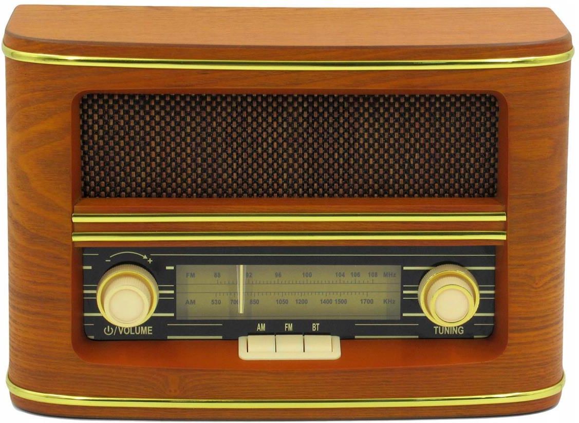 Stylowe i funkcjonalne radio w klimacie retro! Model RD-1901 BT to połączenie klasycznego designu z nowoczesnymi funkcjami, które idealnie wkomponują się w każde wnętrze. Odbiornik pozwala na słuchanie stacji radiowych na zakresach FM i AM oraz umożliwia odtwarzanie muzyki dzięki technologii Bluetooth. Najważniejsze cechy Styl retro: Drewniana, olejowana obudowa z zaokrąglonymi kształtami oraz oldschoolowe pokrętła i podświetlana skala to wyjątkowy design przywodzący na myśl dawne czasy. Bluetooth: Możliwość bezprzewodowego odtwarzania ulubionej muzyki z telefonu, tabletu czy innych urządzeń. Szeroki zakres fal: FM (UKF): 88 MHz – 108 MHz AM (MW): 530 kHz – 1620 kHz Kompaktowe wymiary: Radio zmieści się na półce, parapecie czy kuchennym blacie, oferując czysty i donośny dźwięk. Doskonałe do każdego wnętrza RD-1901 BT idealnie pasuje do: Staromodnych sypialni i salonów – stylizowany wygląd nadaje wnętrzom niepowtarzalnego charakteru. Eleganckich gabinetów – ceniących wysoką jakość i unikalny design. Codziennego użytku – dzięki kompaktowym wymiarom i łatwej obsłudze, doskonale sprawdzi się w kuchni, umilając czas podczas gotowania. Specyfikacja techniczna Moc głośnika: 5W, impedancja 4Ω Zasilanie: Zasilacz DC 9V ~0,8A (polaryzacja: „plus” w środku, wtyczka jack 3,5 mm) Pobór mocy w trybie czuwania: < 0,5W Wymiary urządzenia: 30,3 x 19,9 x 15,2 cm Waga: ~1,82 kg Kolor: Jasny brązowy