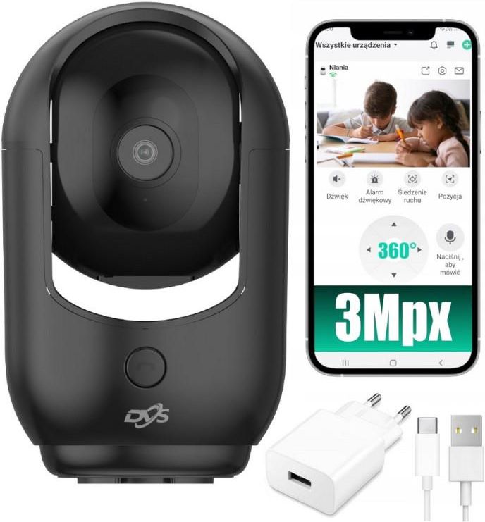 Dvs Elektroniczna Niania Bezprzewodowa Wewnętrzna Kamera Obrotowa Wifi 3Mpx Czarna Poręba