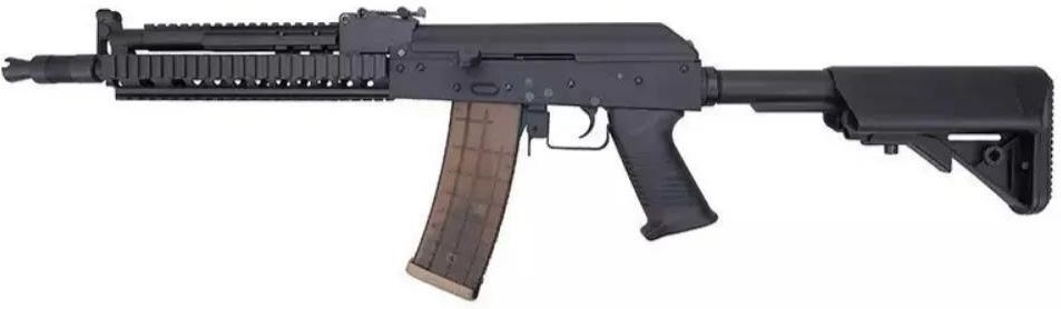 Elektryczna replika karabinka szturmowego GE17 wykonana ze stali, ZnAlu oraz tworzywa sztucznego. Sercem karabinka jest metalowy gearbox v3, znany ze swej wytrzymałości i niezawodności. W połączeniu ze sprężyną główną M120 replika osiąga prędkość wylotową rzędu 400 FPS. Chwyt przedni wyposażony …