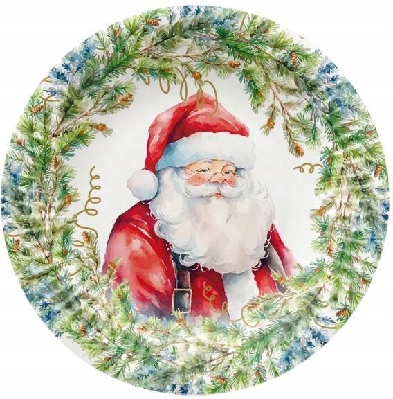 Talerz Papierowy Okrągły Santa Claus Śr. 18cm 8szt. Poręba
