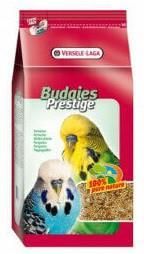 *Versele - Laga Prestige Budgies* to pełnoporcjowa karma dla papużek falistych. Stworzona została z wysokiej jakości ziaren, tak aby wspierać ogólną kondycję organizmu. Zaleca się uzupełnianie karmy pokarmami jajecznymi i witaminowymi w celu zapewnienia idealnej kondycji zwierzęcia. Należy zadbać o stały dostęp do świeżej wody. *Skład:* proso żółte 30%, proso czerwone 12%, owies łuskany 10,5%, proso białe 38%, kanar 4%, siemię lniane 3%, kardi 2%, nasiona nigru 0,5%. *Składniki analityczne:* białko surowe 11,6%, tłuszcze i oleje surowe 6%, włókno surowe 6,5%, popiół surowy 3%, wapń 0,051%, fosfor 0,286%, lizyna 0,27%, metionina 0,28%, treonina 0,36%