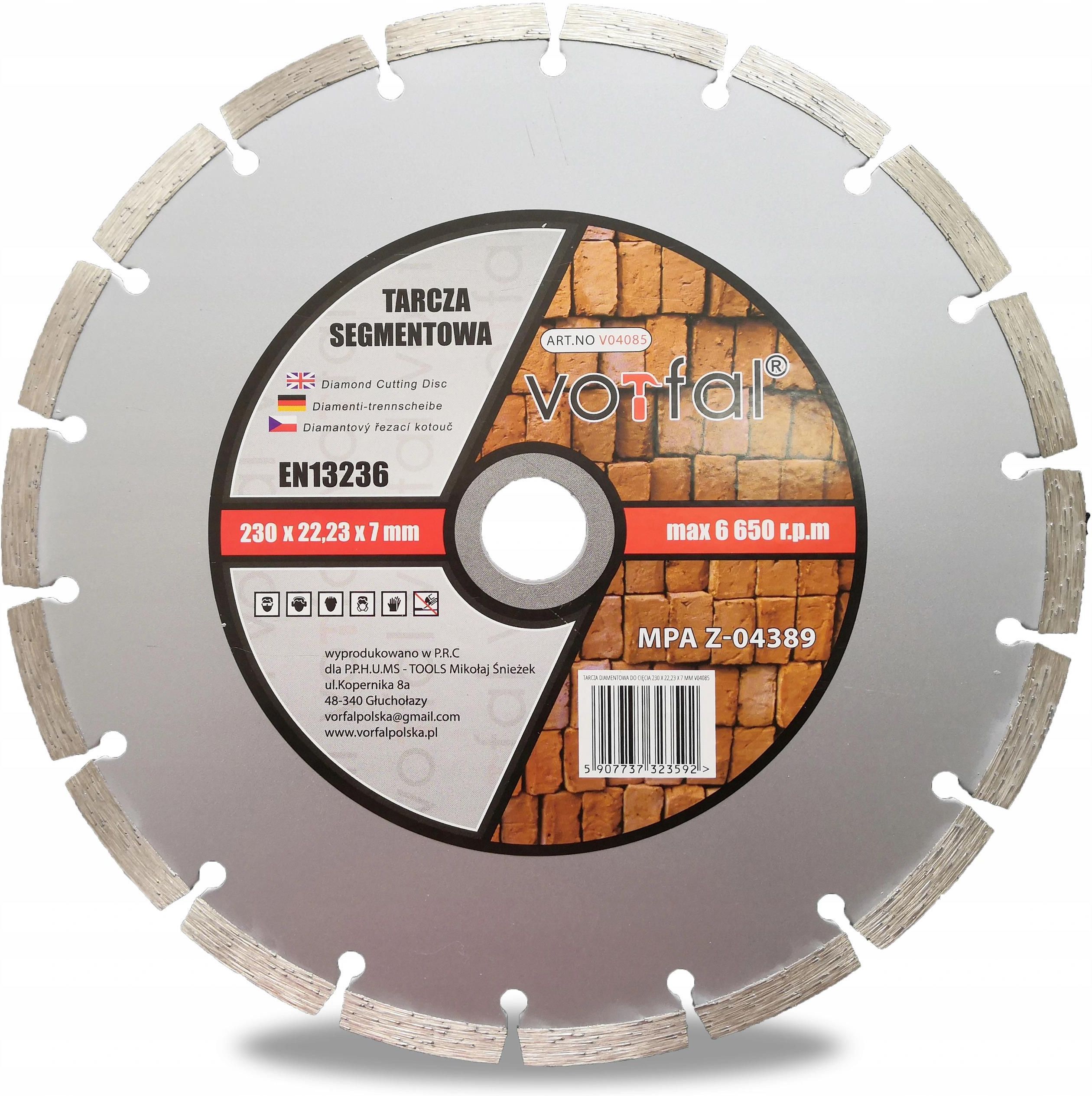 Vorfal Tarcza Diamentowa Segment Betonu Kostki 230Mm V04085 Poręba