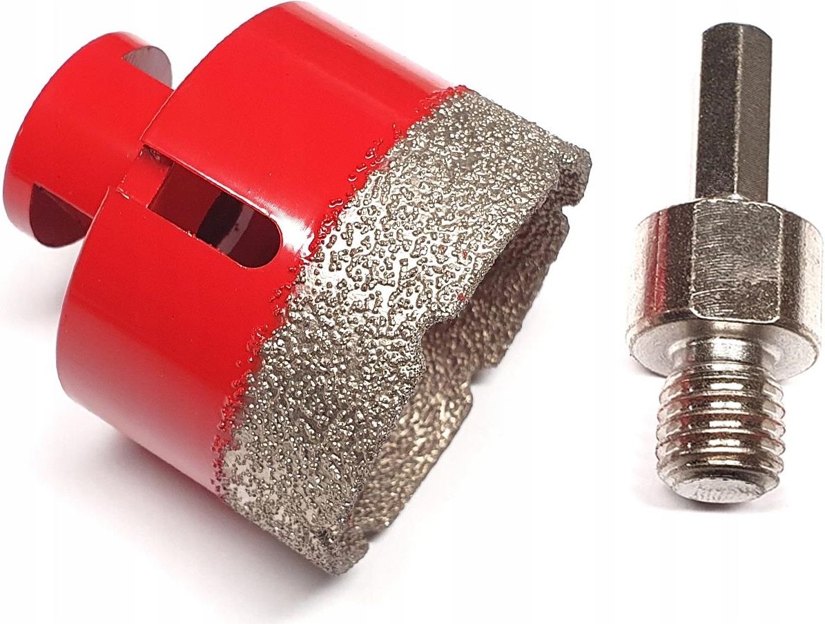 OTWORNICA DIAMENTOWA DO GLAZURY / KORONKA 60MM + ADAPTER NA WKRĘTARKĘ GRATIS! kod produktu: V04456 Specyfikacja produktu: Rozmiar: 60 mm Długość całkowita otwornicy: 60 mm Gwint: M14 do szlifierek Długość nasypu diamentu: 12 mm Diamenty osadzone w technologii próżniowego lutowania Maksymalna prędkość robocza: 11 000 obr./min Otwornica, koronka diamentowa do glazury M14 Materiał korpusu: stal GRATIS - adapter M14 na wkrętarkę Całość zapakowana w plastikowej tubie Zastosowanie: Gres Granit Marmur Ceramika Kamień naturalny