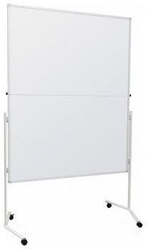 Tablica moderacyjna lakierowana magnetyczna 120x150cm biała Tablica moderacyjna o powierzchni suchościeralnej-lakierowanej magnetycznej w kolorze białym – po powierzchni tablicy można pisać markerami suchościeralnymi i mocować plakaty przy pomocy magnesów – rama z profilu aluminiowego w kolorze białym, nogi stalowe – tablica o podstawie typu V posiada nogi wyposażone w kółka – gwarancja: 2 lata na produkt, 10 lat gwarancji na powierzchnię suchościeralną-lakierowaną.