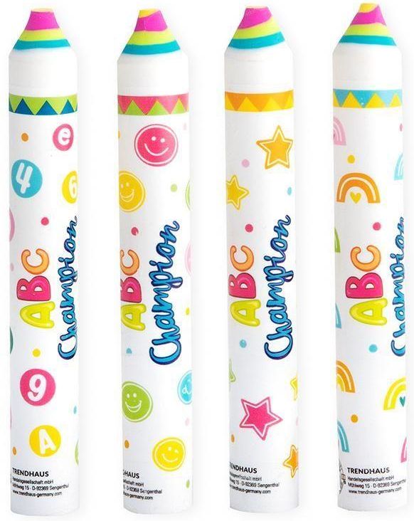 TREND ABC mega gumka d/wymazyw 16/opak 959010 TREND ABC mega gumka d/wymazyw 16/opak 959010 TREND ABC mega gumka d/wymazyw 16/opak 959010 Ołówek XXL z gumką i temperówką w pasującym kolorze. Posiada plakietkę na której można zapisać imię. Dostępne z 4 różnymi kolorami temperówki i gumki: niebieski, …