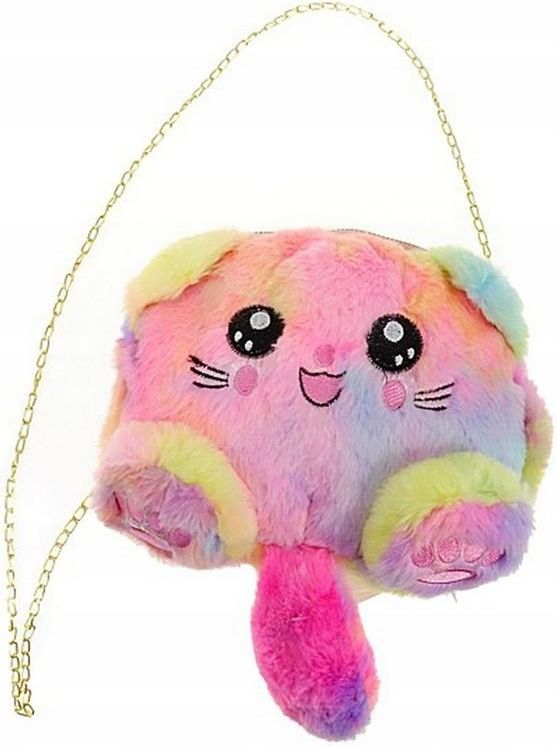 Pluszowa torebka (kotek) od ADAR. Wykonana z miękkiego pluszu o pięknym kolorze. Maskotka przyjemna w dotyku (dzięki miękkiemu materiałowi, który ją pokrywa). Posiada cechy charakterystyczne zwierzątka, jakie odwzorowuje (np. uszka, łapki). Z tyłu znajduje się suwak, który umożliwia otworzenie torebki. Mamy do dyspozycji również łańcuszek, dzięki któremu możemy zawiesić torebkę na ramię. Wymiary zabawki: 23x9x22cm...