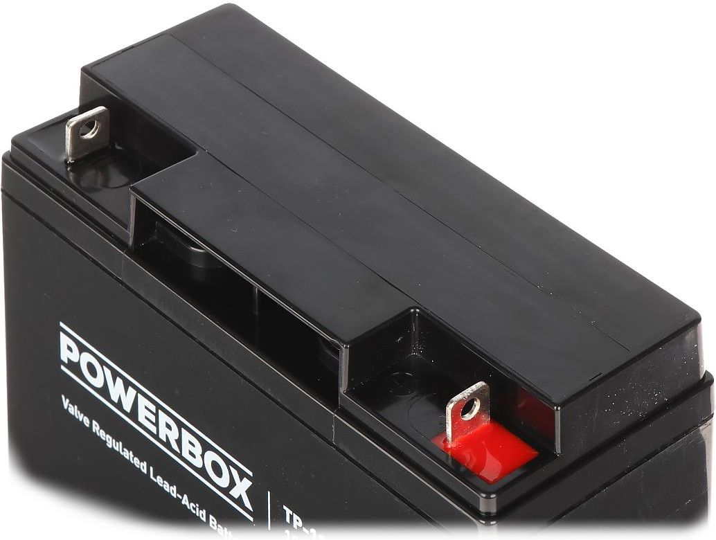 AKUMULATOR 12V/18AH-POWERBOX Opis Wysokiej jakości akumulator wykonany w technologii AGM (Absorbent Glass Mat) zapewnia niezawodność zasilania systemów podtrzymywania napięć takich jak UPS czy zasilania awaryjnego w systemach alarmowych, telewizji przemysłowej, itp. Specyfikacja Pojemność …