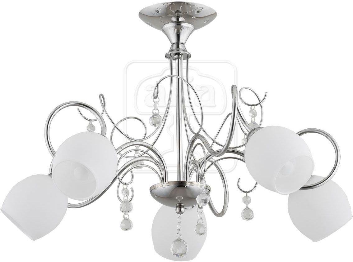wysokość: 37,5 cm szerokość: 55 cm materiał wykonania: metal, szkło typ źródła światła: 5 x E 14 max 40W Produkt nie zawiera źródła światła w komplecie.