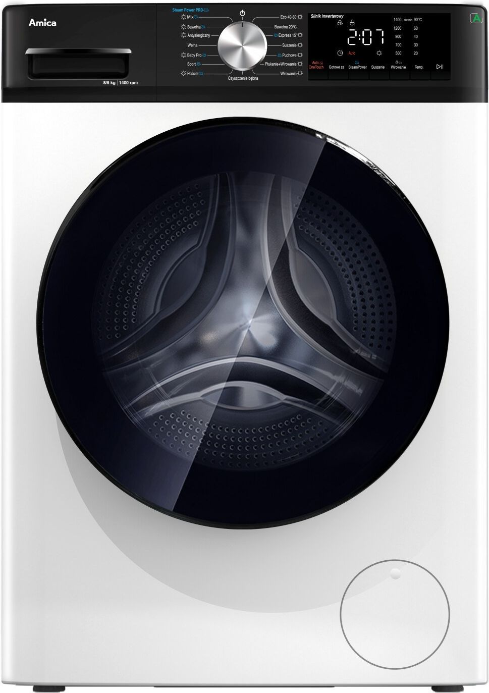 Amica T1AWDS8514DLIST Pralko-suszarka modelu Amica T1AWDS8514DLIST to nowoczesne rozwiązanie, które łączy funkcje prania i suszenia w jednym urządzeniu. Wykonana w eleganckim kolorze Białym, doskonale wpisuje się w różne aranżacje łazienek i pralni. Urządzenie od producenta Amica to idealne rozwiązanie dla osób ceniących oszczędność miejsca i czasu, szczególnie w małych mieszkaniach, rodzinach czy dla singli. Dzięki tej pralce można w jednym cyklu odświeżyć, wyczyścić i wysuszyć odzież, eliminując konieczność korzystania z dwóch osobnych urządzeń. To praktyczne rozwiązanie, które sprawdzi się zarówno na co dzień, jak i podczas intensywnych okresów, gdy czas jest szczególnie cenny. Nowoczesna technologia i efektywność Serce tego modelu stanowi innowacyjny bezszczotkowy silnik LogicDrive 3.0, który zapewnia niezawodność, cichą pracę oraz wysoką energooszczędność. Dzięki zastosowaniu najnowszych technologii, urządzenie radzi sobie z krótkimi programami, osiągając wysoką skuteczność prania i suszenia. Szybkie cykle gwarantują doskonałe rezultaty, oszczędzając czas i energię, co czyni ten model wyjątkowo efektywnym. Funkcje i rozwiązania dla perfekcyjnych efektów Kluczową funkcją tego modelu jest SteamPower Pro, która na początku cyklu generuje parę wodną. Taki zabieg pozwala na głębokie odświeżenie i dezynfekcję odzieży, eliminując nieprzyjemne zapachy i bakterie. Parowanie skutecznie wygładza zagniecenia, co znacząco ułatwia prasowanie. Dzięki temu można cieszyć się zawsze schludnym i czystym ubraniem, bez konieczności stosowania dodatkowych środków chemicznych. Funkcje i zalety Korzystanie z tego urządzenia to przede wszystkim oszczędność czasu i miejsca. Najważniejsze zalety tego modelu to: wysoka efektywność prania i suszenia nawet przy krótkich programach, technologia SteamPower Pro zapewniająca dezynfekcję i odświeżenie odzieży, cicha praca dzięki bezszczotkowemu silnikowi LogicDrive 3.0, oszczędność energii i czasu dzięki nowoczesnym rozwiązaniom technologicznym, intuicyjny panel sterowania i precyzyjne programy zapewniające komfort obsługi. Estetyka i design Urządzenie dostępne jest w eleganckim, białym kolorze, który doskonale komponuje się z różnymi aranżacjami łazienek i pralni. Minimalistyczny design podkreśla nowoczesność i funkcjonalność, czyniąc pralko-suszarkę nie tylko praktycznym, ale także estetycznym elementem wnętrza. Pralko-suszarka Amica T1AWDS8514DLIST to połączenie zaawansowanej technologii, wysokiej skuteczności i komfortu użytkowania, które sprosta oczekiwaniom nawet najbardziej wymagających użytkowników.