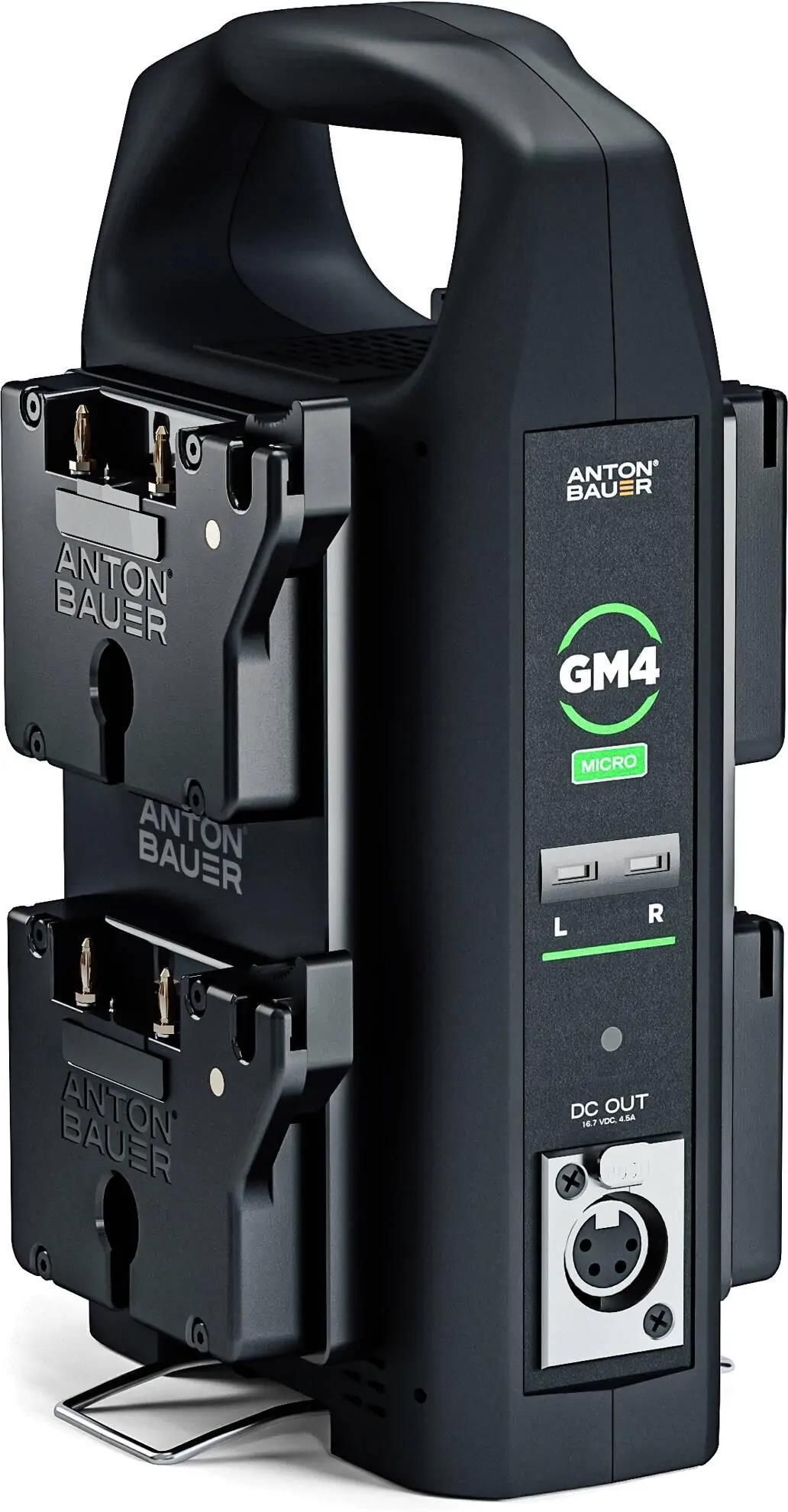 Charge four Gold-Mount micro series or two regular-sized Gold-Mount batteries simultaneously while powering your camera accessories with the lightweight and portable Anton/Bauer GM4 battery charger. Lithium-ion batteries, like the Anton/Bauer Titon Micro 90 (94Wh 10A) charge in approximately 3 …