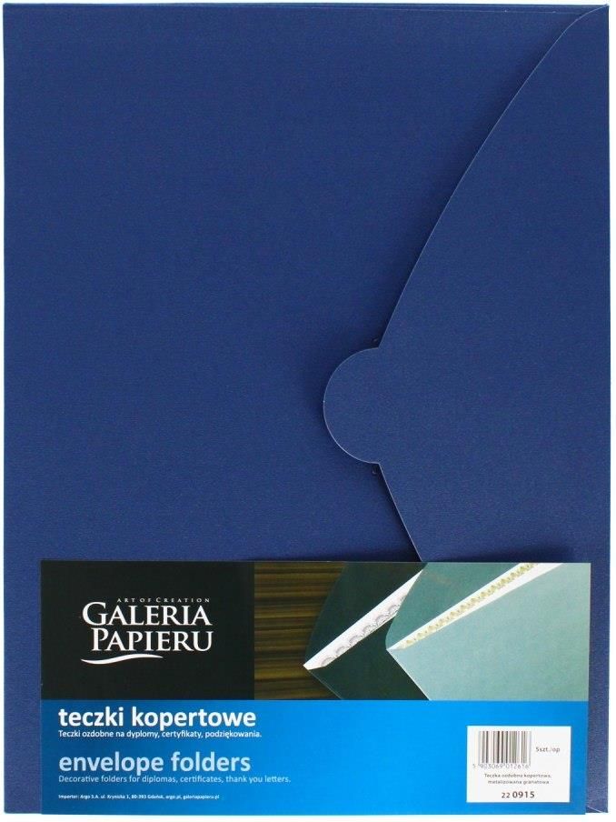 Teczka ozdobna kopertowa metalizowana granatowa 5szt/op. teczka wykonana z kartonu metalizowanego pomieści 40 arkuszy papieru 80g/m2 w formacie A4 opakowanie 5 sztuk ozdobna koperta A4 sprawdzi się jako uniwersalna teczka na certyfikaty, dyplomy, podziękowania, listy gratulacyjne, oferty handlowe