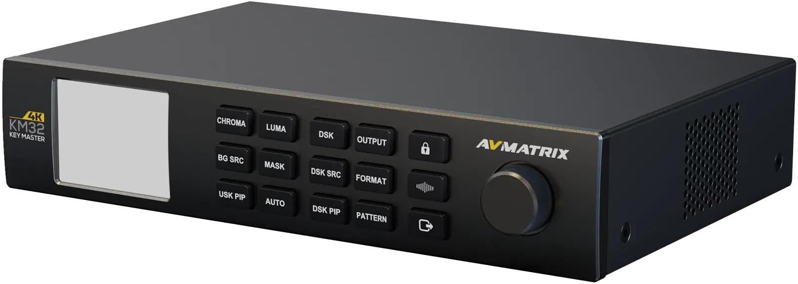 AVMATRIX KM32-4K | Procesor kluczujący wideo 4K HDMI Real-time Chroma Key Master 4K HDMI Chroma Key Master 3 wejścia 4K HDMI: obsługa źródła klucza pierwszego planu, tła i DSK. 4 wyjścia 4K HDMI: elastyczne wyjścia dla PGM, Clean PGM, Matte i AUX. Inteligentne kluczowanie jednym przyciskiem: …