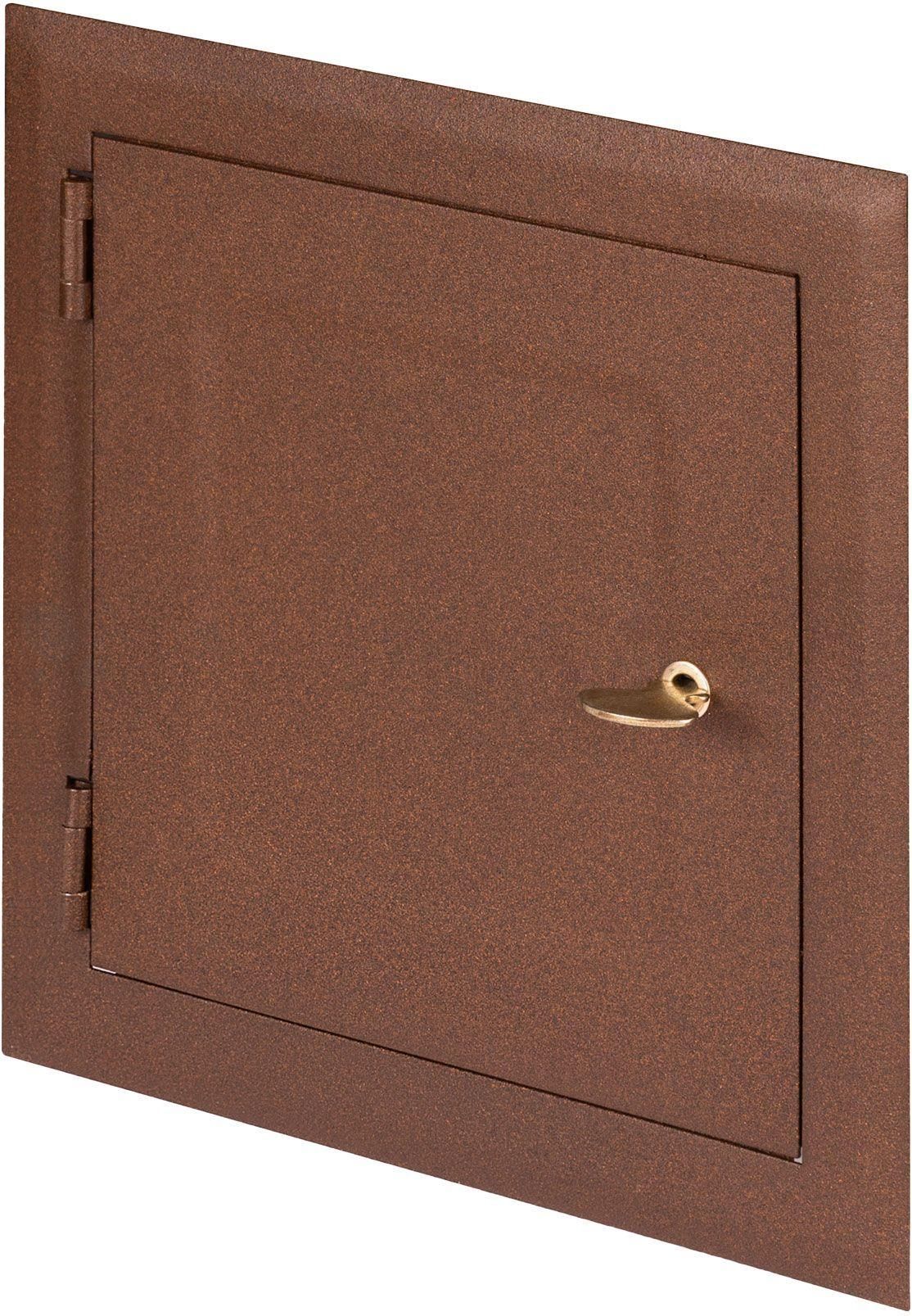Drzwi kominowe wyciorowe 14x14 cm brązowe Kod produktu - DMW81BR Specyfikacja Techniczna Materiał - Blacha stalowa malowana proszkowo Kolor - Brązowy Wymiary - Dostępne w wymiarach: 14x14 cm lub 15x25 cm System zamykania - Zamek z kluczykiem Montaż - Na powierzchni ściany komina Odporność na …
