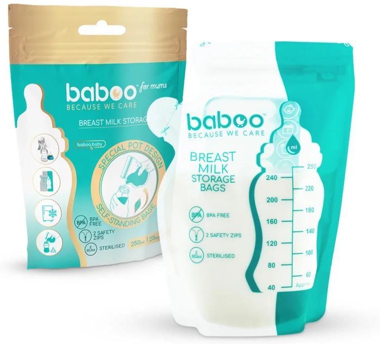Baboo Breast Milk Storage Bags, 25x250 ml, Przechowywanie mleka matki dla kobiet, Odciągnięte mleko zachowaj bezpiecznie na później. Wybierz Baboo Breast Milk Storage Bags , a mleko będziesz mieć zawsze pod ręką, kiedy tylko tego potrzebujesz. Właściwości: do łatwego przechowywania mleka w zamrażarce lub lodówce podwójna warstwa materiału bezpieczne zamknięcie Sposób użycia: Odciągnięte mleko matki należy przechowywać w woreczku w lodówce lub w zamrażarce.