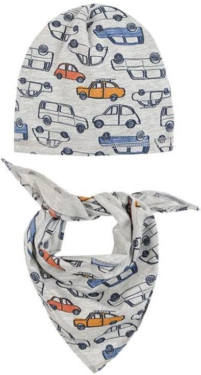 BAWEŁNIANA CZAPKA I CHUSTA CHŁOPIĘCA SZARA AUTA 40/42 CM COOL CLUB Poznań
