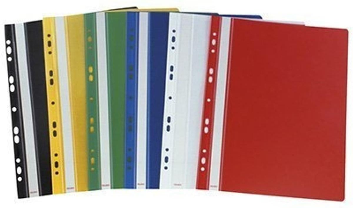 Skoroszyt wykonany z twardej folii PVC, przód przezroczysty, tył kolorowy. Europerforacja umożliwiająca wpięcie do segregatora z dowolnym ringiem. Wewnątrz klasyczny mechanizm z wąsem i listwą skutecznie zabezpieczający wpiętą zawartość; wąs o długości 16,5 cm. Na bocznej krawędzi wymienny, …