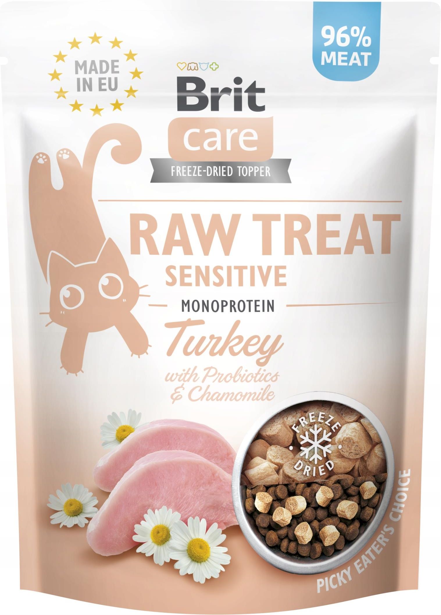 Brit CARE - Hipoalergiczne karmy dla zwierząt Brit Raw Treat Cat Sensitive 40g Brit Raw Treat Sensitive. Freeze-Dried Cat Treat and Topper. Turkey with Probiotics and Chamomile Liofilizowany przysmak i topper. Indyk z probiotykami i rumiankiem. Karma uzupełniająca dla dorosłych kotów …